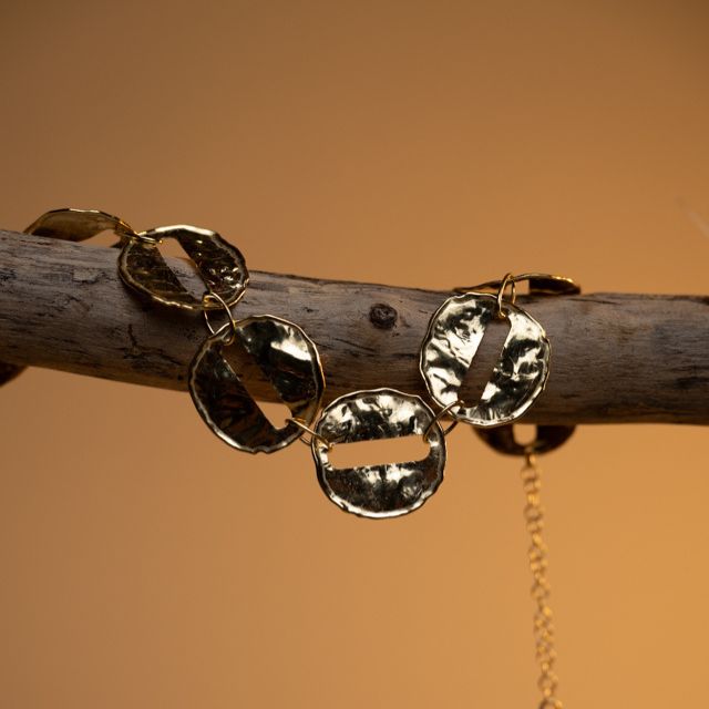 Collana in argento 925 placcata oro giallo battuta a mano con moschettone.